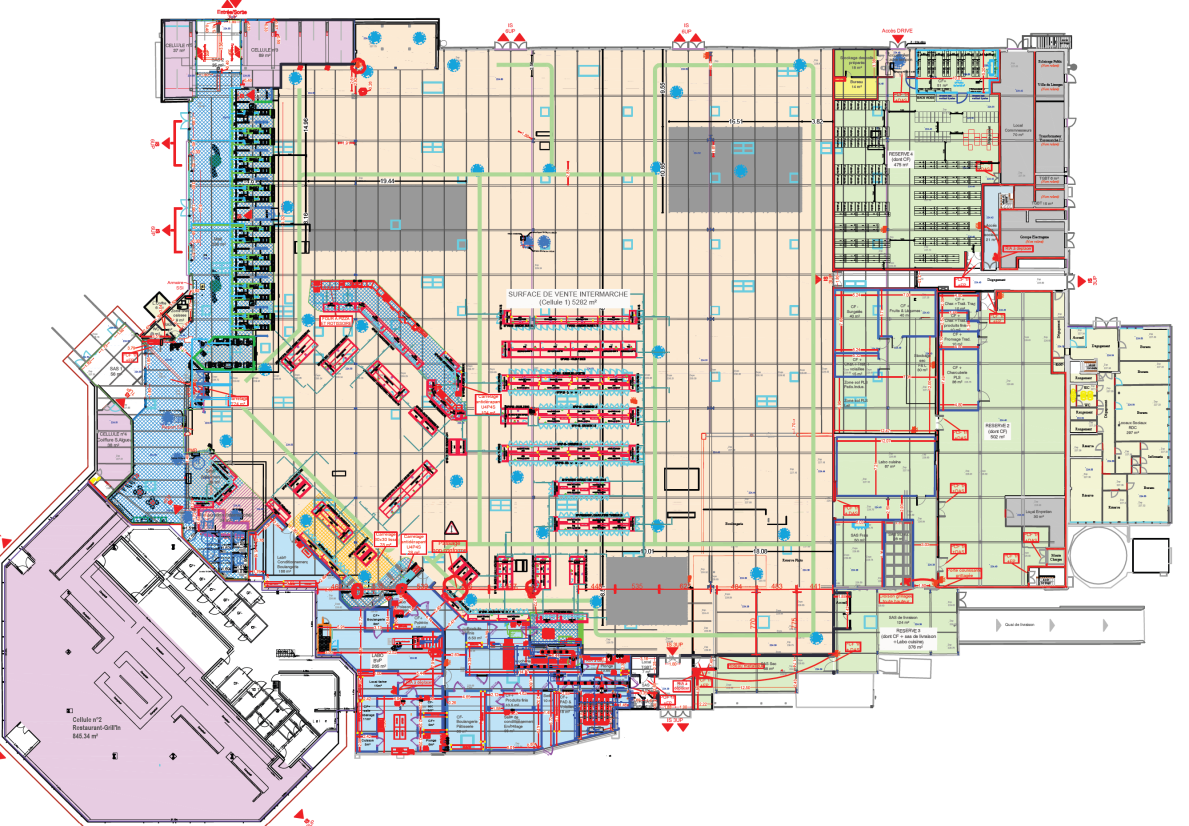 Hypermarché INTERMARCHE LIMOGES 87 mise en conformité désenfumage de l'ensemble, comprenant remplacement des ouvrants en toiture, créations et rebouchage sur toiture membrane