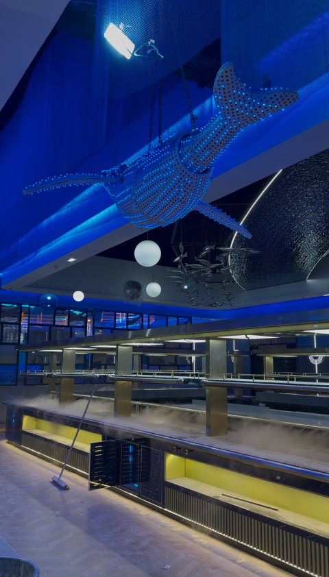 Restaurant asiatique de 2800m² a Cormontreuil 51 Restaurant plongé dans le noir pour que le client jouisse de sa décoration.